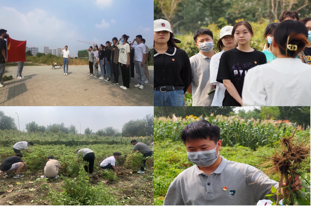 活动伊始,同学们有序进入责任田,认真聆听园艺员讲解农业知识、传授种植技术,同学们干劲十足,撸起袖子、弯下腰来进行清理杂草、作物采摘;随后,辅导员面向学生党员开展“赓续红色基因,传承劳动精神”专题党课,以邀请同学演唱歌曲《南泥湾》为切入点,带领大家共同学习延安大生产运动中产生的“艰苦奋斗、自力更生”的南泥湾精神,讲述新时代劳动教育的重要意义、学校劳动育人的特色活动以及天理农场的整体情况,希望同学们传承先辈精神、增强历史自信,牢固树立劳动最光荣、劳动最崇高、劳动最伟大、劳动最美丽的观念。